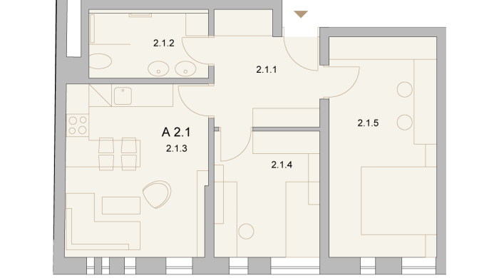| 2.1.3 | Obývací pokoj s kuchyňským koutem | 17,32 m2 |